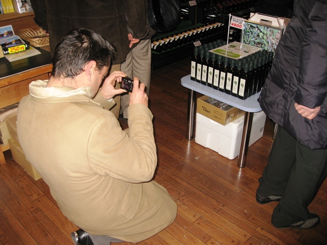 物産センター店頭のオリーブオイルを激写するエリアーノ