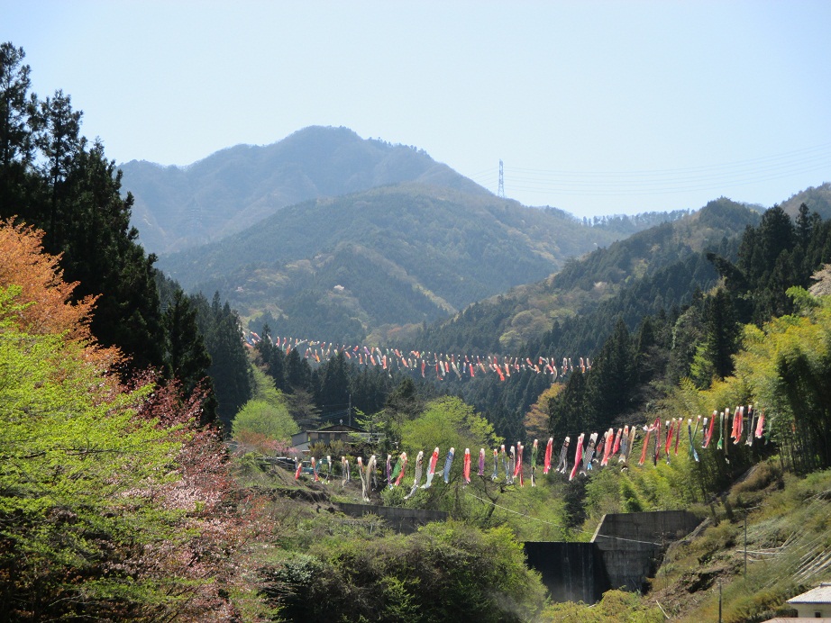 那須大橋からの稲含山と「こいのぼりの里」の眺めです。