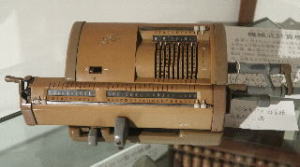 1920年代(T9〜) 「機械式計算機(タイガー手廻計算機)」(展示品)が開発され、1960年代始め頃まで広く使われる