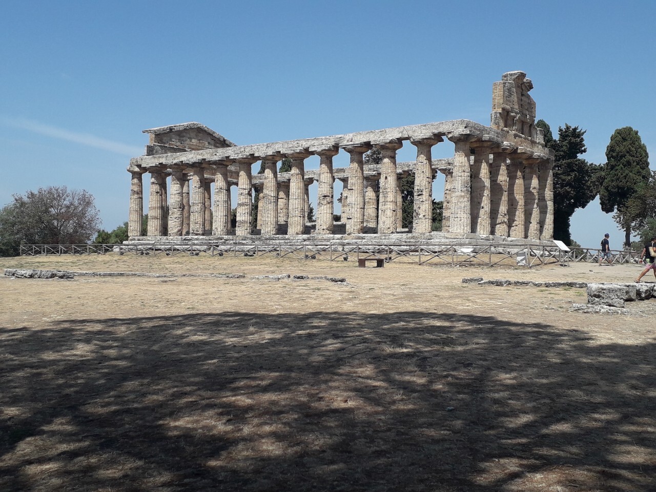 八月も末となり処暑の頃となりましたが、こちらチェルタルドでは稀にみる酷暑に今なお見舞われており、つい冷えたスイカが食べたくなる今日この頃です。イタリアは、そんな八月ながらやはり夏休暇シーズンであることに変わりはないこともあり、多くの人々が海や山へ遠出した街のあちこちには、「バカンスのためクローズ」という告知の紙が貼られた、閉ざされたシャッターのお店が目に留まる時季でもあります。さてそんな文化が息づく国・イタリアは、紀元前から流れる悠久の歴史を直に伝える古代の遺跡や世界遺産が多数現存しており、訪れる人々の心を古代ロマンへ誘う魅力的な国とも言われています。今回は、主人の夏休暇中に先日訪れた世界遺産である古代「大ギリシャ」時代にそのルーツを遡る都市「ぺストゥム」の遺跡について、少しご紹介したいと思います。