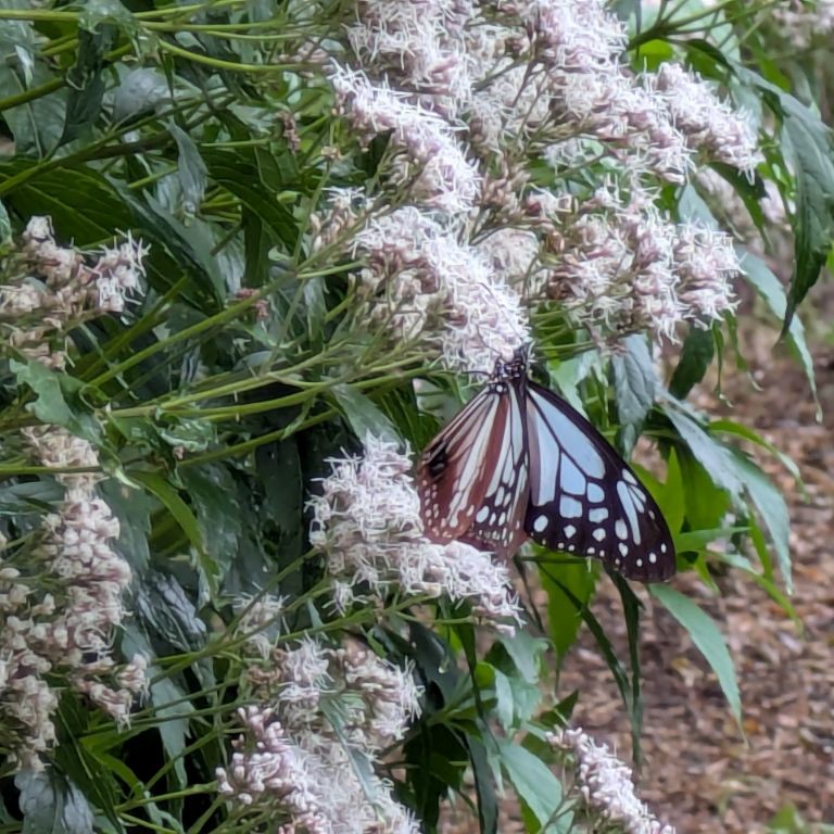 地元の有志の方が土地を整備し、ヒヨドリバナとフジバカマを植えたところ、アサギマダラが休憩のため飛来するようになったそうです。